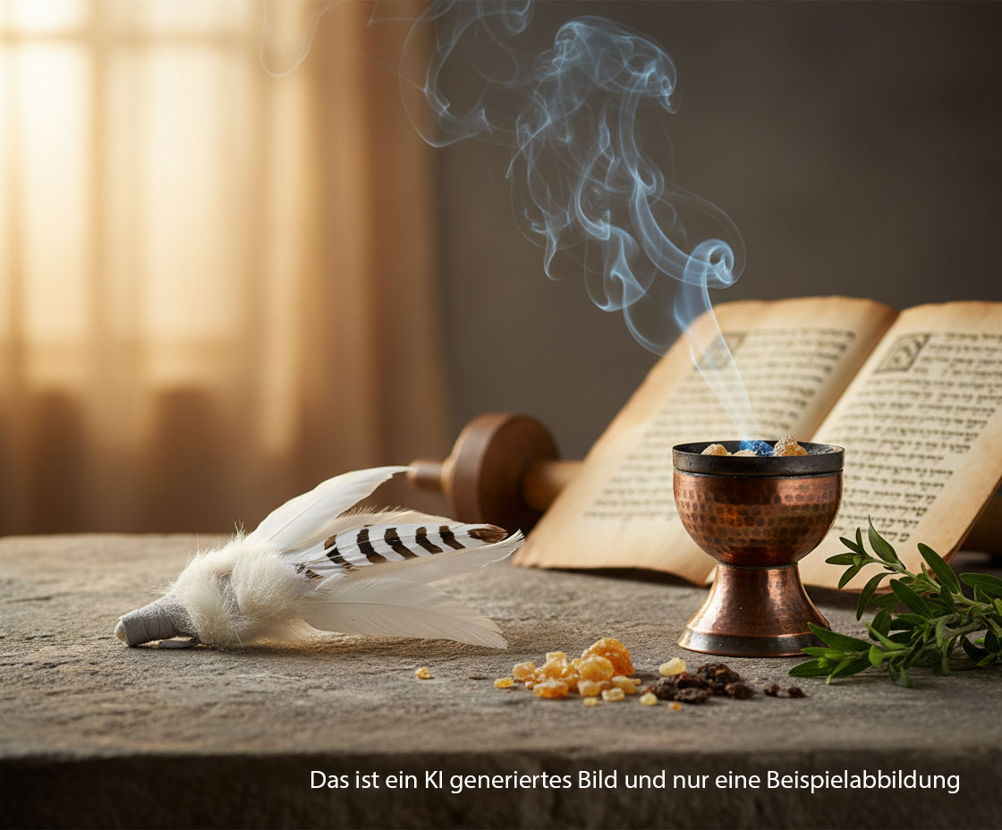 Der Name Erelah kommt aus dem Hebräischen und bedeutet „Heiliger Bote“ oder „Engel“, gemeint ist der Bote Gottes. Er steht für Schutz, geistlicher Erhöhung und göttliche Führung. Dieser Federfächer eignet sich hervorragend für spirituelle und rituelle Räucherungen.