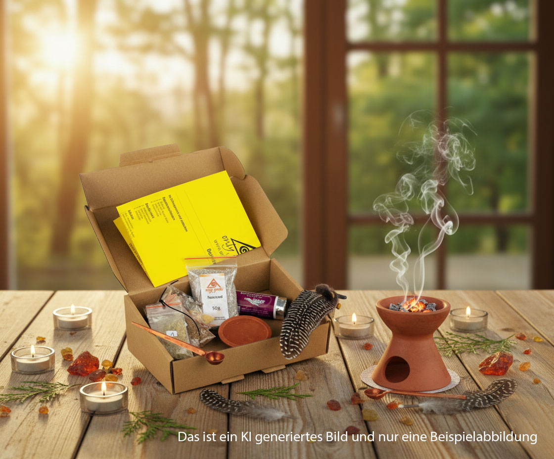 - außerdem 4x Räucherwerk: Weihrauch Aden, Rotes Sandelholz, Copalharz und Wacholder